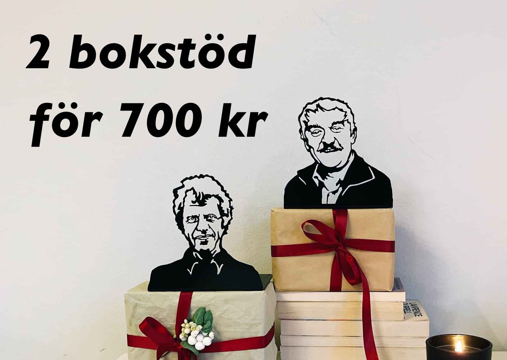 Snygga till i bokhyllan med Novellix snygga bokstöd som föreställer älskade kulturpersonligheter! Låt Selma Lagerlöf med sitt ikoniska porträtt ta plats i bokhyllan, eller varför inte låta Shakespeare stötta upp boktravarna? Industridesignern Jan Landqvist står för idé och design av serien som kallas »Svenskt litteraturstöd«.