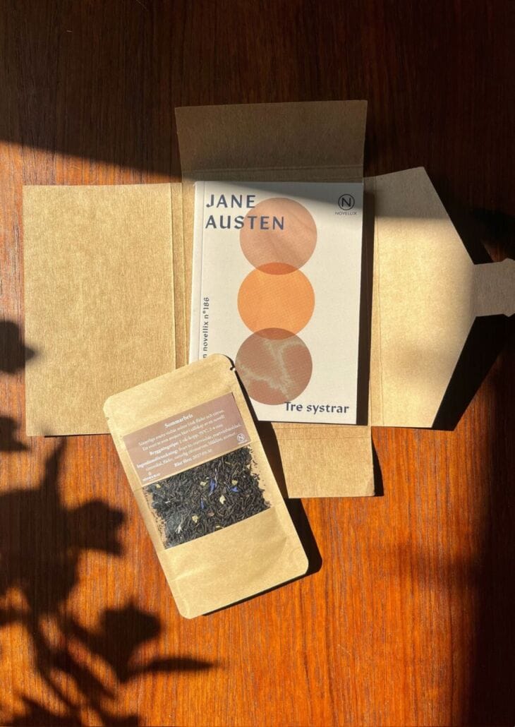 Njut av Jane Austens kvicka och karaktäristiska humor i novellen Tre systrar tillsammans med en kopp Sommarbris – ett svart te där sötsyrliga svarta vinbär möter frisk fläder och citron.