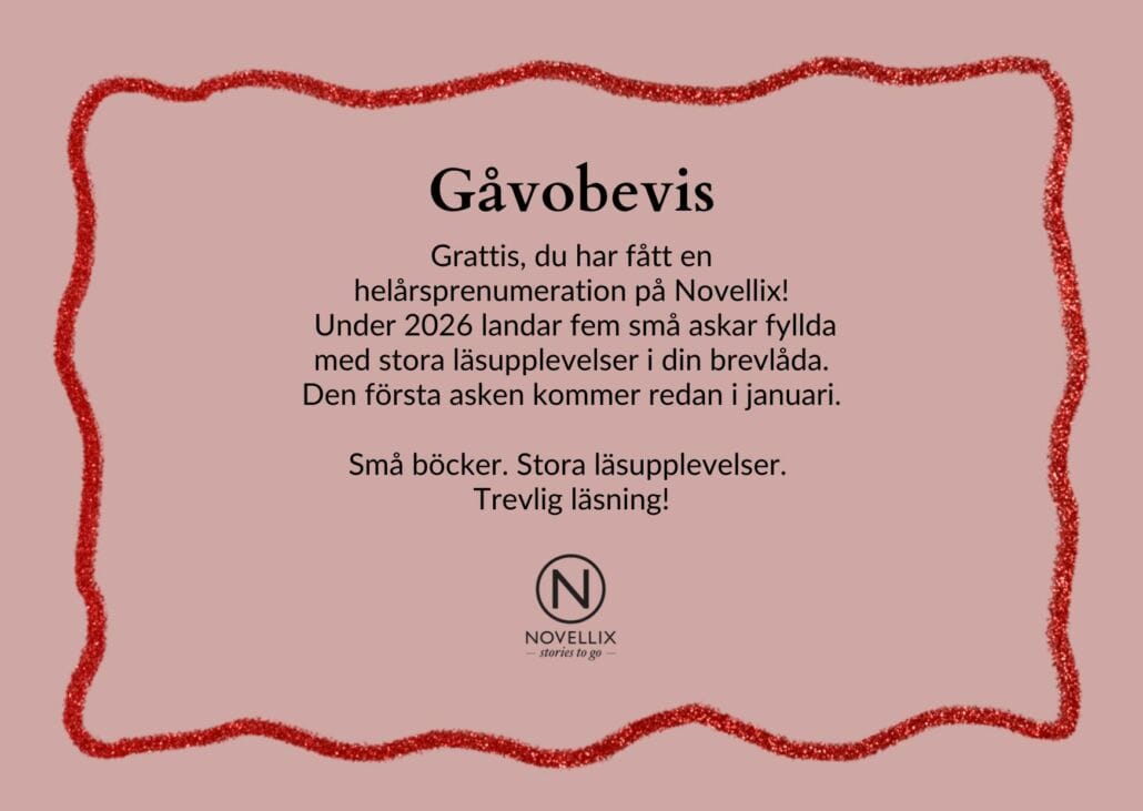 Vill du läsa mer – eller ge bort en riktigt originell julklapp? Med en helårsprenumeration från Novellix får du 5 askar med noveller – totalt 20 små böcker – levererade direkt hem i brevlådan. Perfekt för den som vill hitta tillbaka till läsningen, upptäcka nya författare och enklare få in läsandet i vardagen.